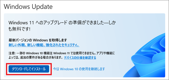 3. [ダウンロードしてインストール] をクリックすると、バックグラウンドで作業が進み、準備が整うと再起動を促されます。