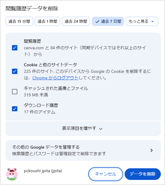 データの削除方法(Google Chromeの場合)
