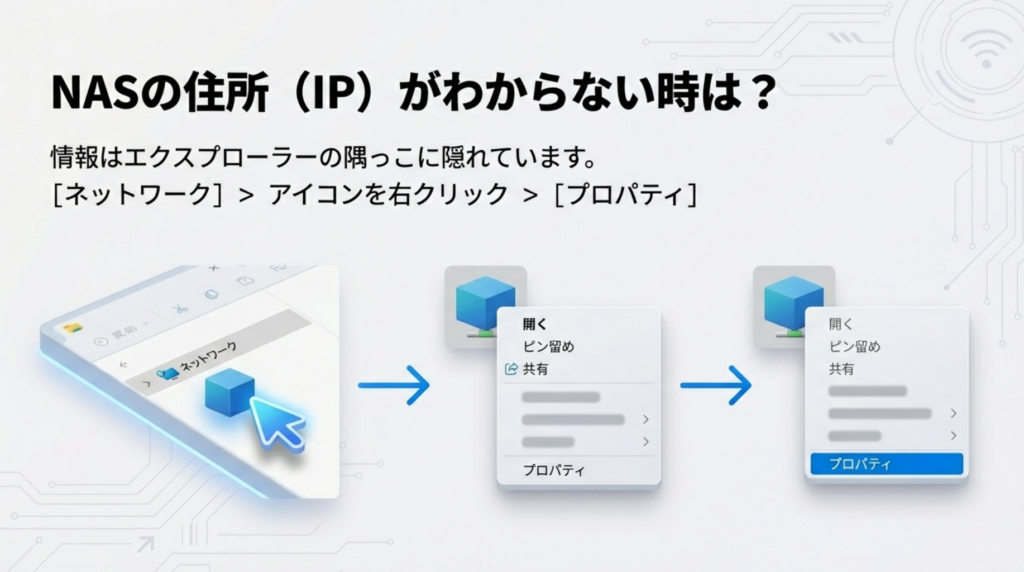 NASやネットワークプリンターなどは、一度設定すると影の薄い存在になりがちですが、エクスプローラーの隅っこに情報は隠れています。ファームウェア(機器を動かすための内部ソフト)の更新時にも必要になる知識なので、覚えておいて損はありません。