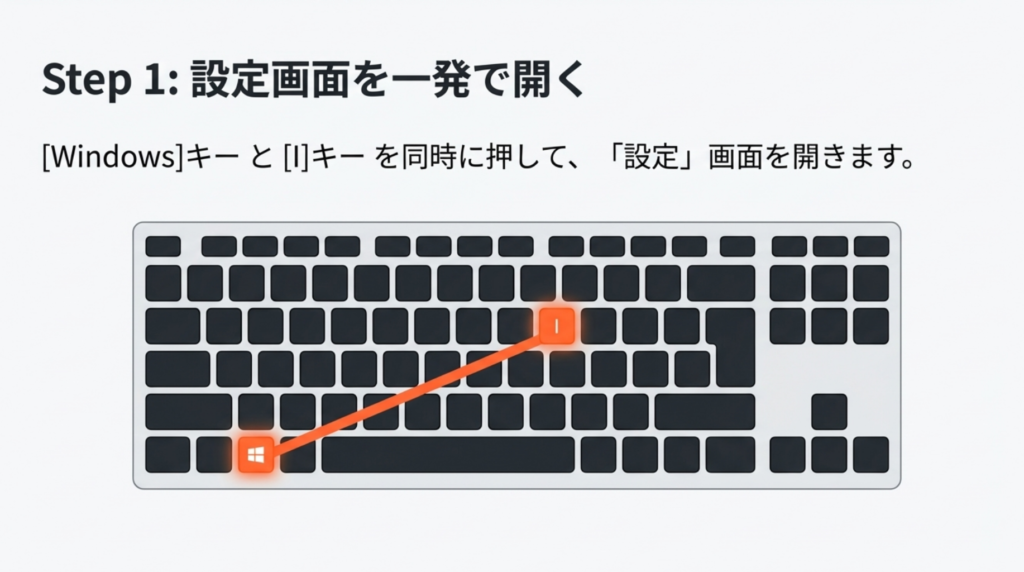 - [Windows]キーと[I]キーを押して[設定]画面を開きます。