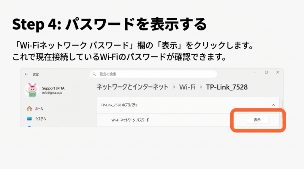 Windows11でWi-Fiパスワードを確認する手順