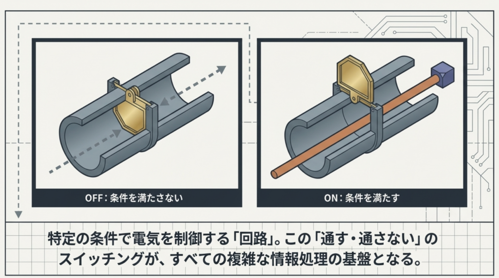 半導体の代表的な素材はシリコンです。シリコンは、通常は電気を通しませんが、特殊な加工を施すことで電気を通す性質に変化させることができます。この「電気を通したり、通さなかったり」という性質を活かして、特定の条件で電気を制御する「回路」を物質上に刻むことで、様々な情報処理が可能になります。回路が複雑になるほど、より高度な情報処理ができるようになります。