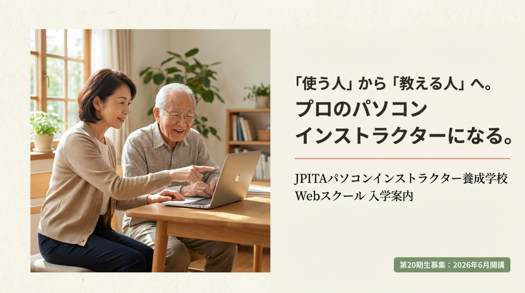「パソコンの先生になるには、若くて、専門用語にも精通している、いわゆる『パソコンにものすごく詳しい人』でなければ務まらない」。キャリアチェンジを考えたとき、多くの方がそんなイメージを抱くかもしれません。