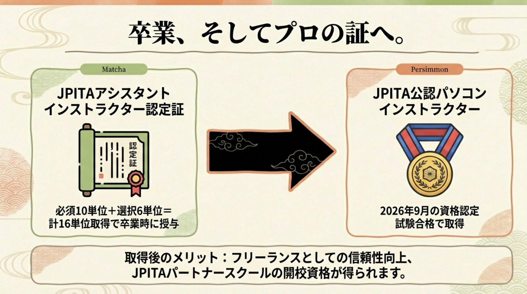 - すべての学習過程を修了すると、JPITAアシスタントインストラクターの資格を取得できます。