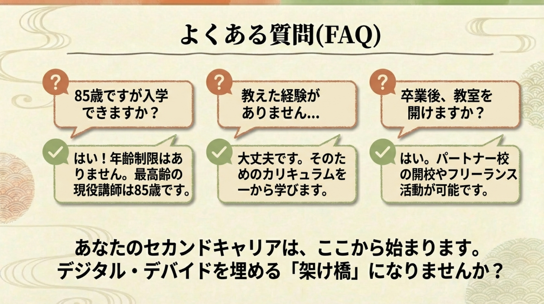 人生100年時代において、セカンドキャリアやサードキャリアを考える多くの人にとって、年齢が障壁にならないことは大きな希望となるでしょう。