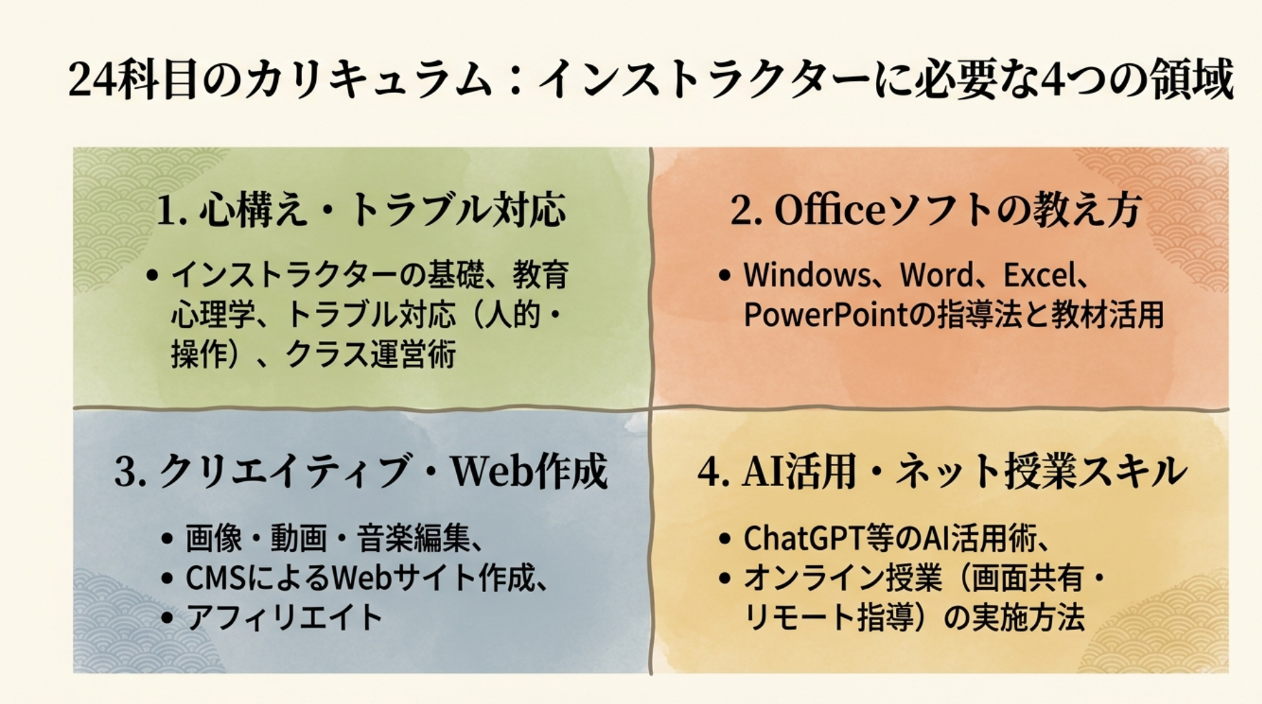 なぜなら、現場で求められているのは、難しい専門用語を並べることよりも、初心者の「わからない」という気持ちに寄り添い、パソコンを使う「楽しさ」を伝えることだからです。あなたの「好き」という気持ちこそが、最高の教材になるのです。