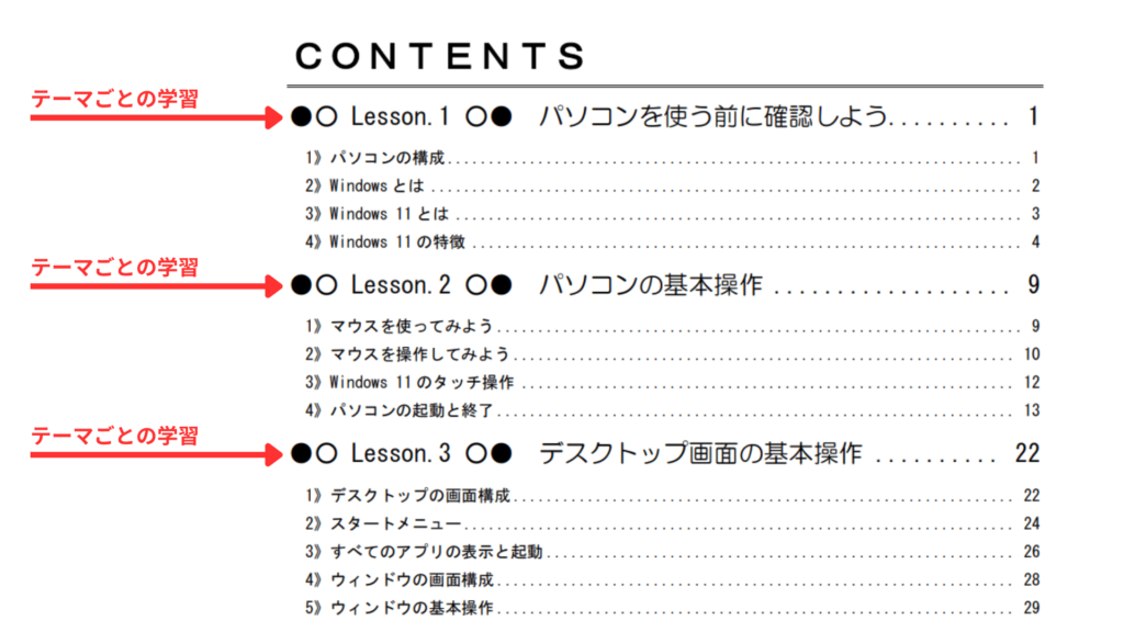 JPITAの『教えるテキスト』は、レッスン単位でテーマが分かれています。